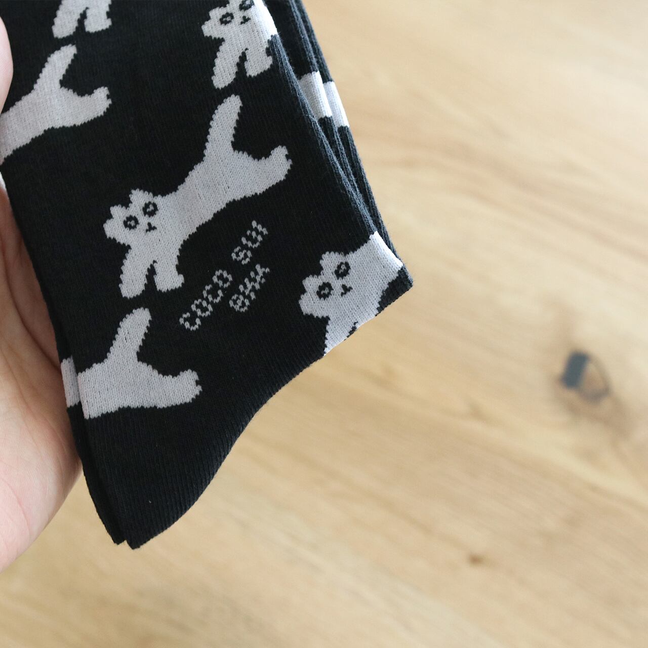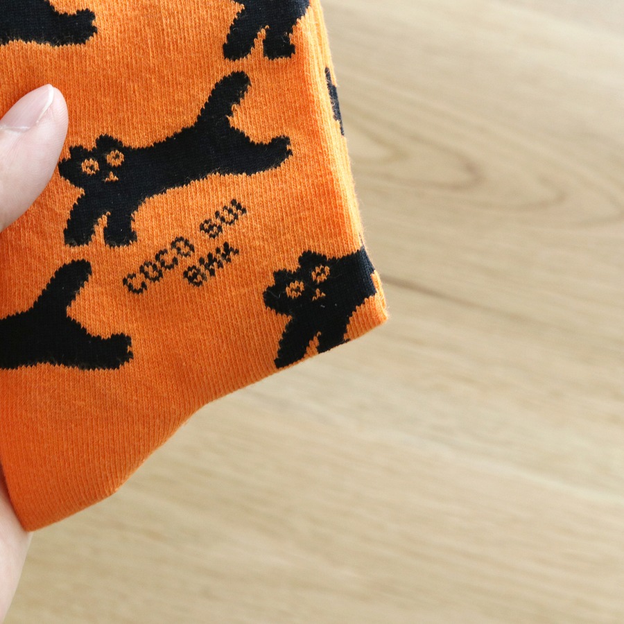 おとぼけ顔の猫が織り込まれた豊富なカラーラインナップの靴下です。